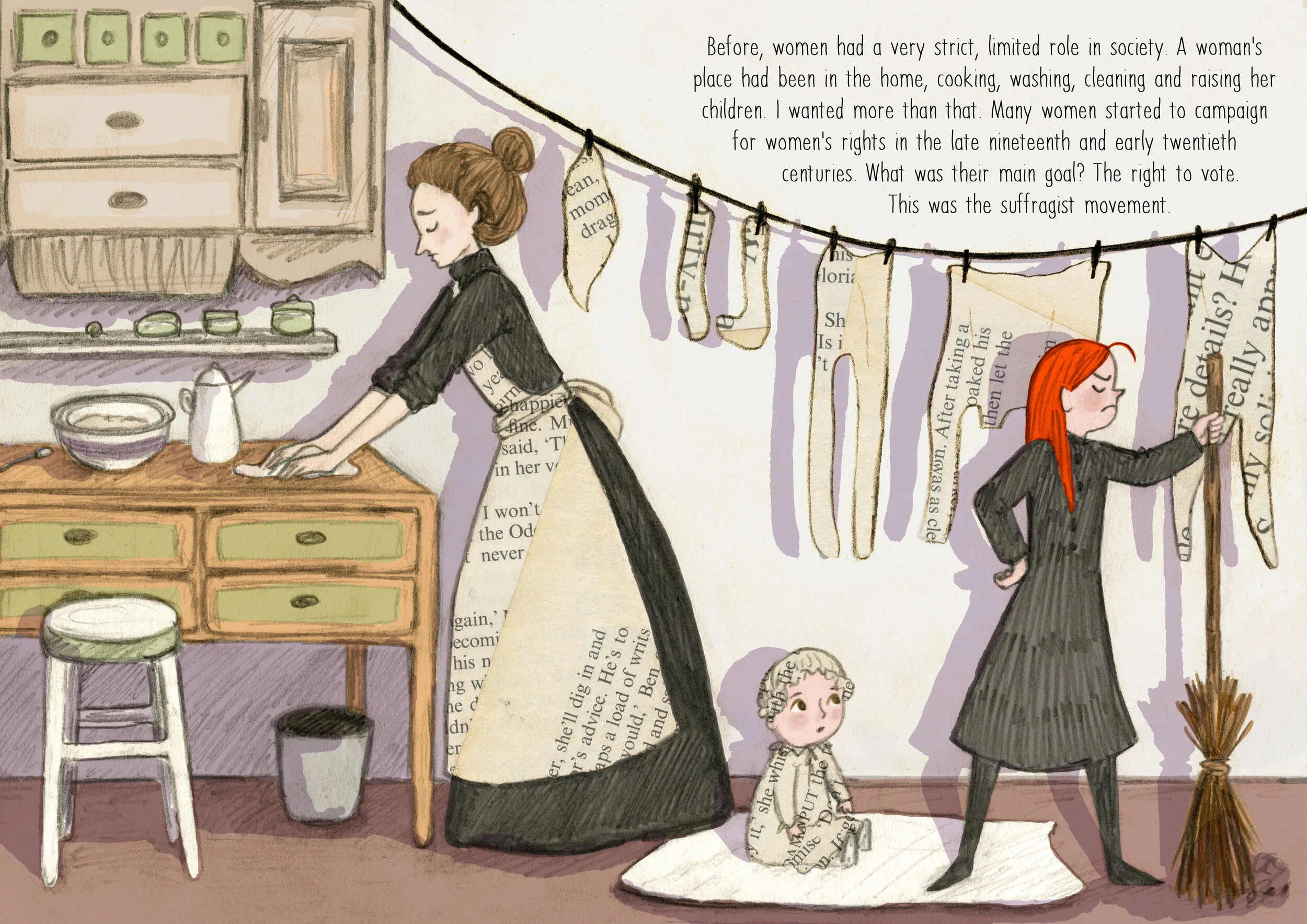 A book concept project that followed the history of women’s suffrage, an important topic to teach children about. The use of collaged paper links to the use of typography in the history of women getting the vote.